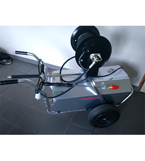 Pression 200 bar - débit 20 l/min - flexible 20 m sur enrouleur - lance jet plat - lance turbo